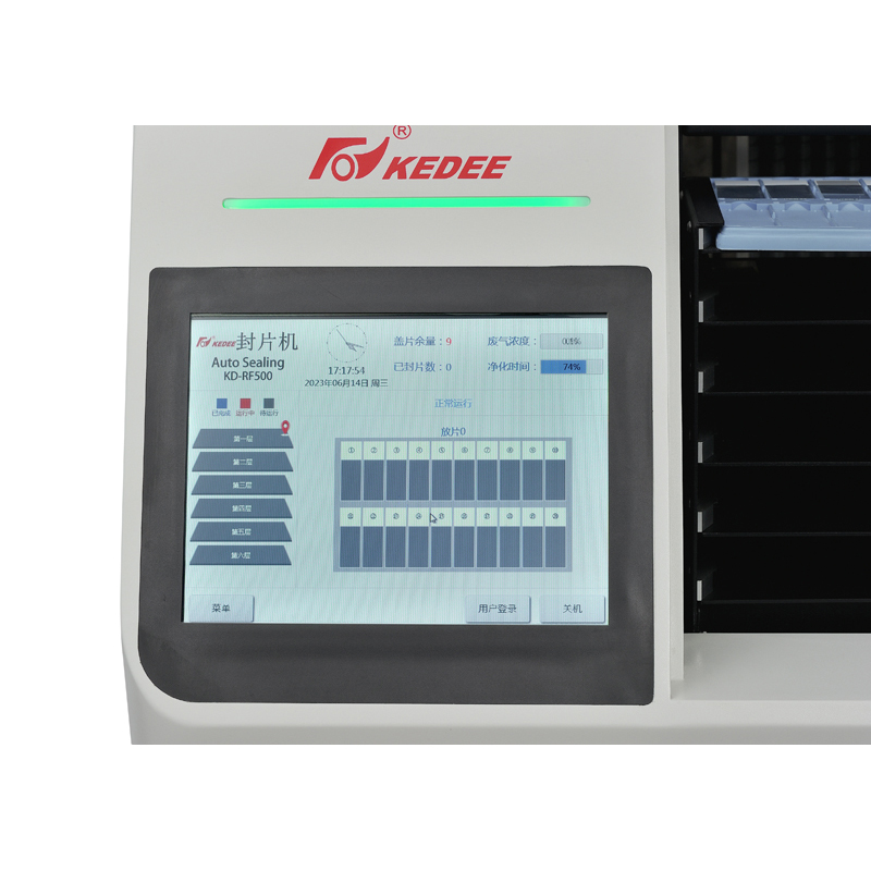 ◇ 封片機(jī)采用10.4工控彩色觸摸控制屏。WINDOWS操作系統(tǒng),智能人機(jī)交互系統(tǒng),操作便捷易